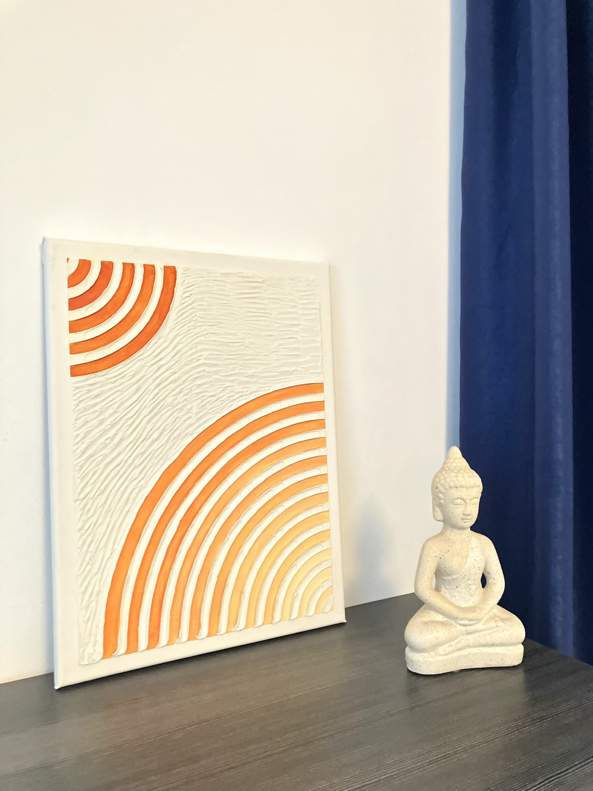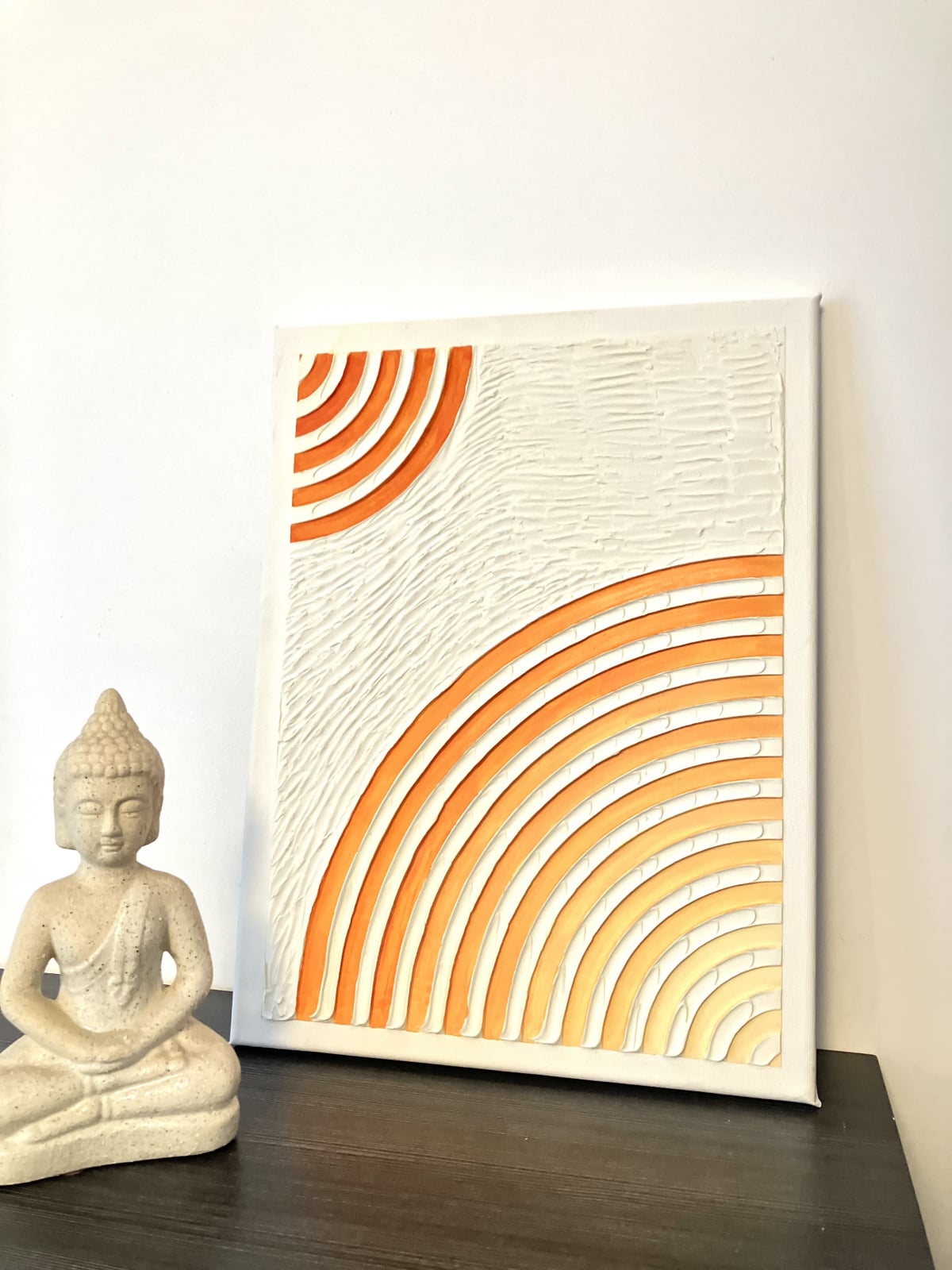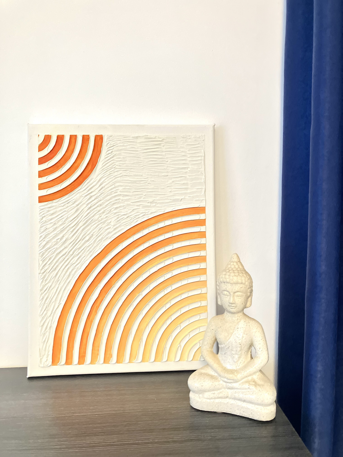 Tablou texturat in relief, realizat din pasta si vopsea acrilica pe panza intinsa pe sasiu de lemn. Lucrat cu drag, uscat, slefuit, pictat si lacuit pentru o protectie indelungata.