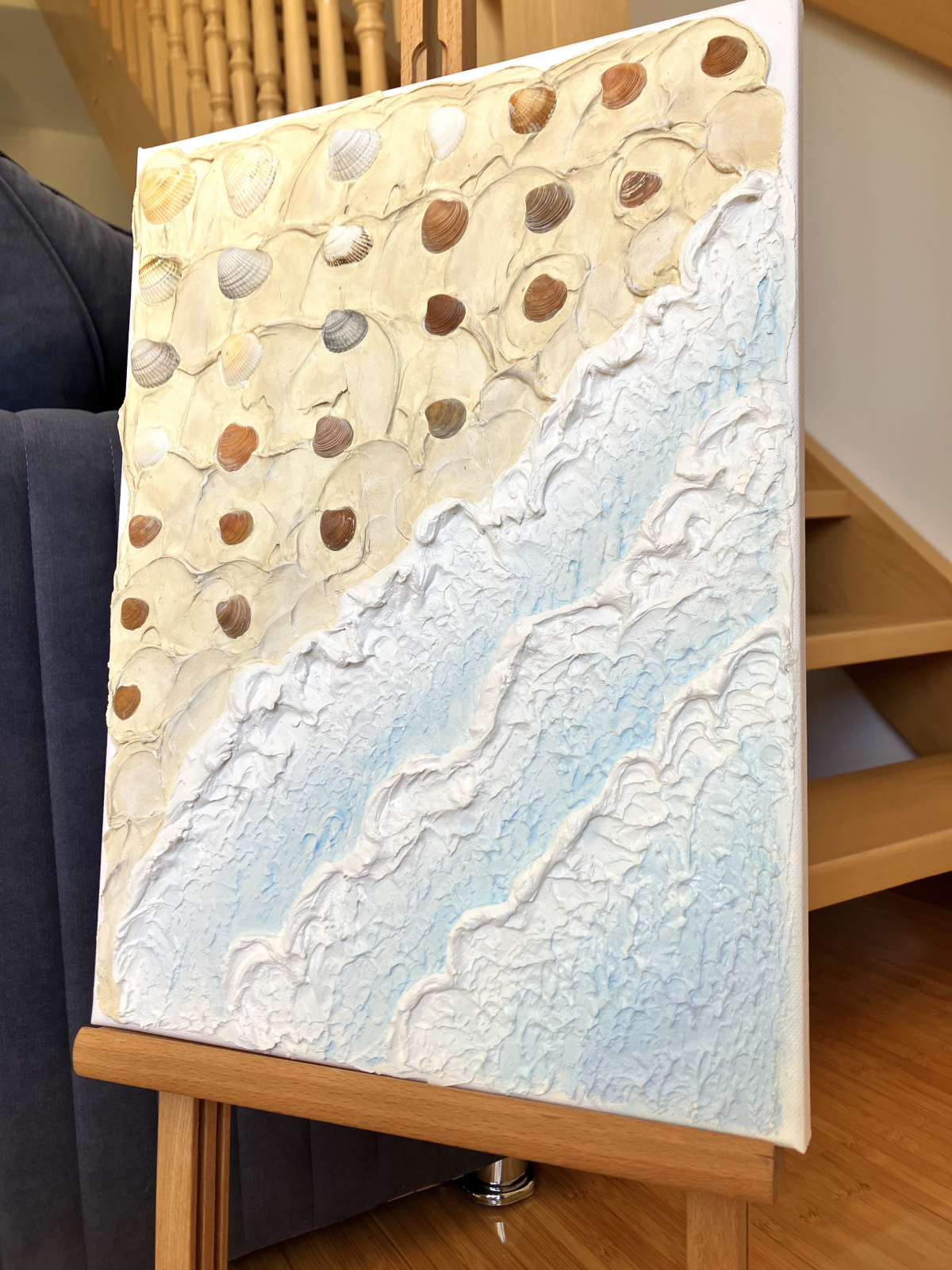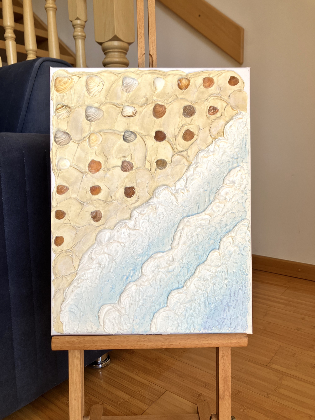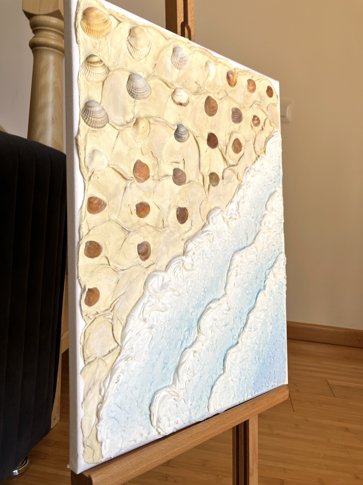 Tablou texturat in relief, realizat din pasta si vopsea acrilica pe panza intinsa pe sasiu de lemn. Lucrat cu drag, uscat, slefuit, pictat si lacuit pentru o protectie indelungata.